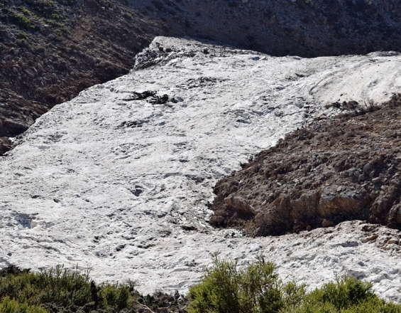 Απίστευτη συγκέντρωση παγωμένου χιονιού για μήνα Αύγουστο σε τόσο χαμηλό υψόμετρο. Προφανώς από τεράστια χιονοστιβάδα του Χειμώνα, όπως σημειώνει ο φωτογράφος.