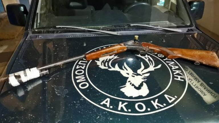 Ομοσπονδιακοί θηροφύλακες της Π.Ε. Χανίων, ενώ περιπολούσαν σε αγροδασική περιοχή του Βαρύπετρου, κατά τις 9:30 περίπου το βράδυ της περασμένης Παρασκευής (16/2), εντόπισαν ένα αγροτικό όχημα, στην καρότσα του οποίου βρίσκονταν 2 άτομα, το ένα με προβολέα με τον οποίο «σάρωνε» την περιοχή και το άλλο με ένα κυνηγετικό όπλο.
