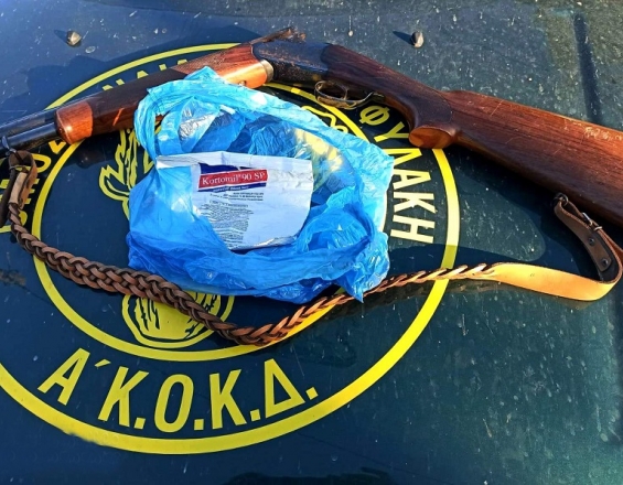 Από την έρευνα εντοπίστηκε μία συσκευασία που περιέχει φυτοφάρμακο, η χρήση του οποίου απαγορεύεται στην Ελλάδα, καθώς και ένα κυνηγετικό όπλο, του οποίου η άδεια κατοχής έχει λήξει.