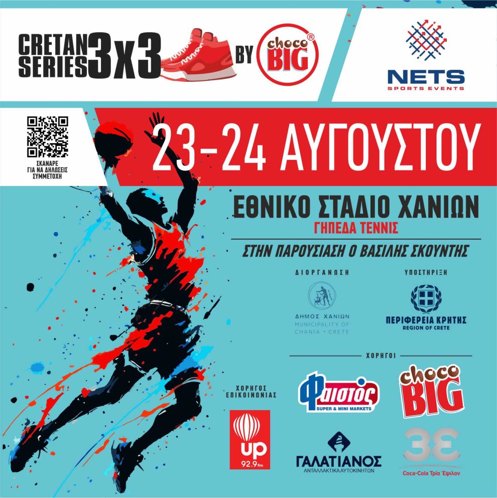 Το 9ο Τουρνουά 3x3 Basketball Cretan Series by choco BIG συνδιοργανώνεται από τον Δήμο Χανίων και τη Nets Sports Events με την υποστήριξη της Περιφέρειας Κρήτης.