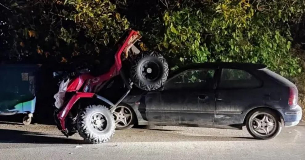Το τροχαίο σημειώθηκε επί της οδού Πλαστήρα, στον κάθετο δρόμο στην οδό Γογονή, όταν κάτω από αδιευκρίνιστες μέχρι στιγμής συνθήκες, ένα τετράτροχο τύπου γουρούνα, συγκρούστηκε με ένα αυτοκίνητο και στη συνέχεια κατέληξε στο καπό ενός δεύτερου αυτοκινήτου.