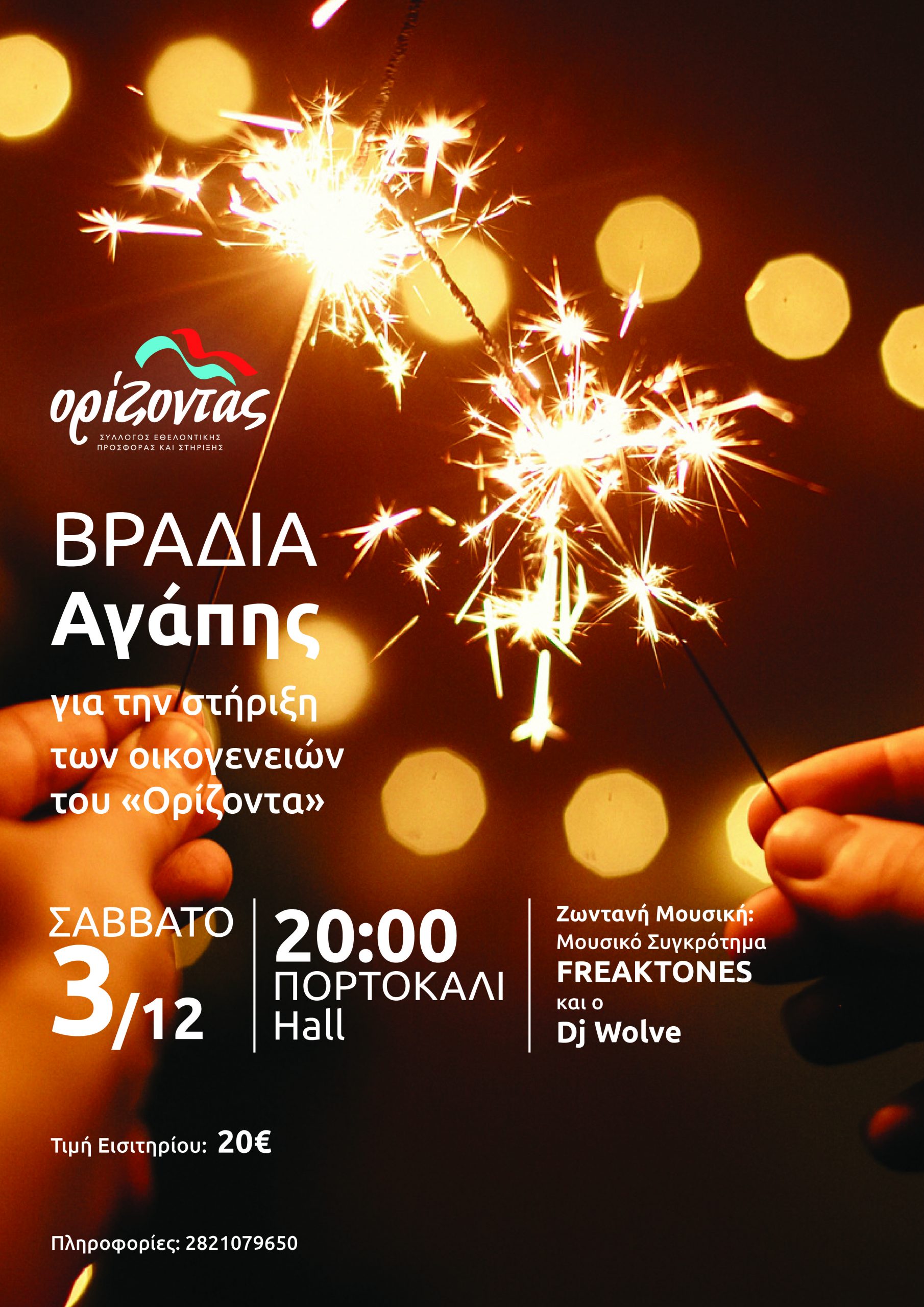 Το Σάββατο 3 Δεκεμβρίου και ώρα 8 μ.μ. θα πραγματοποιηθεί εκδήλωση στο «Πορτοκάλι Hall» για την στήριξη των οικογενειών του «Ορίζοντα».