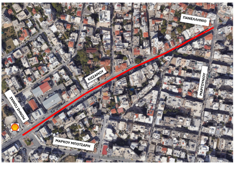 Οι εργασίες θα πραγματοποιηθούν στο τμήμα από τη διασταύρωση με την οδό Καλογερή (βενζινάδικο Shell) έως τη διασταύρωση με την οδό Μαργουνίου. Για την ασφαλή εκτέλεση των εργασιών, η οδός Κισσάμου θα παραμείνει κλειστή και στα δύο ρεύματα από την Κυριακή 3 Μαΐου έως και την Τρίτη 5 Μαΐου 2026.