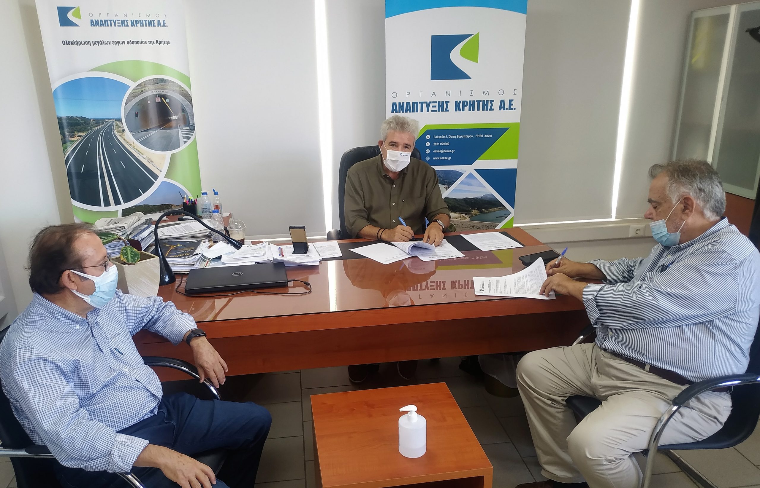 Την Τετάρτη 15/9/2021 μεταξύ του Διευθύνοντος Συμβούλου του Οργανισμού Ανάπτυξης Κρήτης, κ. Άρη Παπαδογιάννη, του Προέδρου και Διευθύνοντος Συμβούλου της τεχνικής εταιρίας «ΔΟΜΙΚΗ ΚΡΗΤΗΣ ΑΕ» κ. Γιώργου Συνατσάκη και υπό την παρουσία του Διευθυντή Συγκοινωνιακών Έργων του Ο.Α.Κ. κ. Γιώργου Αγαπάκη,   υπογράφτηκε η σύμβαση  συνοδού του ως άνω έργου, που αφορά τις «ΕΡΓΑΣΙΕΣ ΜΕΤΑΤΟΠΙΣΗΣ ΑΡΔΕΥΤΙΚΩΝ ΔΙΚΤΥΩΝ O.A.K. A.E.»