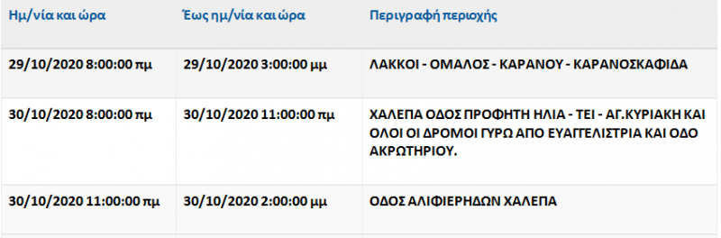 Διακοπές ρεύματος σε περιοχές του Ν. Χανίων, την Πέμπτη και την Παρασκευή