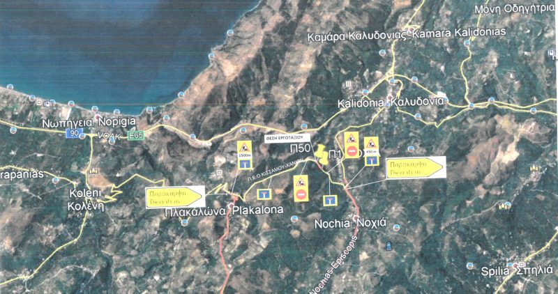 Στα πλαίσια εκτέλεσης του έργου «Έργα αντιστήριξης πρανών επί της Π.Ε.Ο. Χανίων – Κισάμου και αποκατάσταση καταστρώματος οδού στη θέση Νοχιά» πρόκειται να διακοπεί η κυκλοφορία σε τμήμα της Παλαιάς Εθνικής Οδού Κισάμου – Χανίων, πλησίον του οικισμού Νοχιά προς Πλακάλωνα.