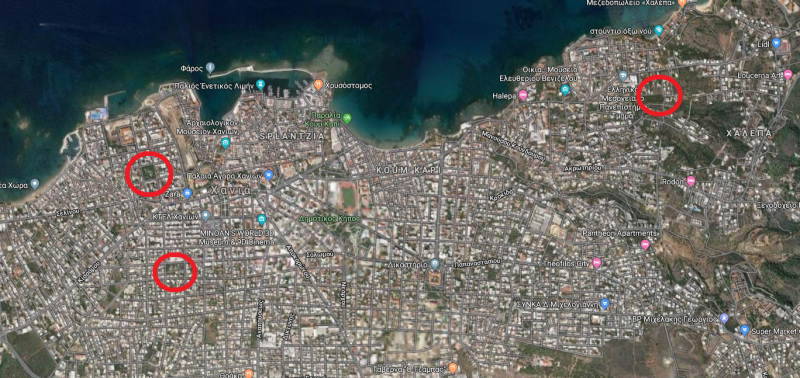 Οι επεμβάσεις αφορούν στους χώρους CH11 (Πάρκο Πολυχρονίδη) το οποίο έχει συνολικό εμβαδό 4.733,40τ.μ., ενεργή επιφάνεια 4.750,71τ.μ. και μπορεί να εξυπηρετήσει 2.375 άτομα, στον χώρο CH16 (Πάρκο “Φράγκικο”) συνολικής επιφάνειας 4.236,99τ.μ., ενεργής επιφάνειας 3.587,57τ.μ. που δύναται να εξυπηρετήσει 1.794 άτομα και ο χώρος CH35 (Πάρκο περιοχή Χαλέπα, ΟΤ 1104) με συνολική και ενεργή επιφάνεια 1.661,587τ.μ. που δύναται να εξυπηρετήσει 832 άτομα.