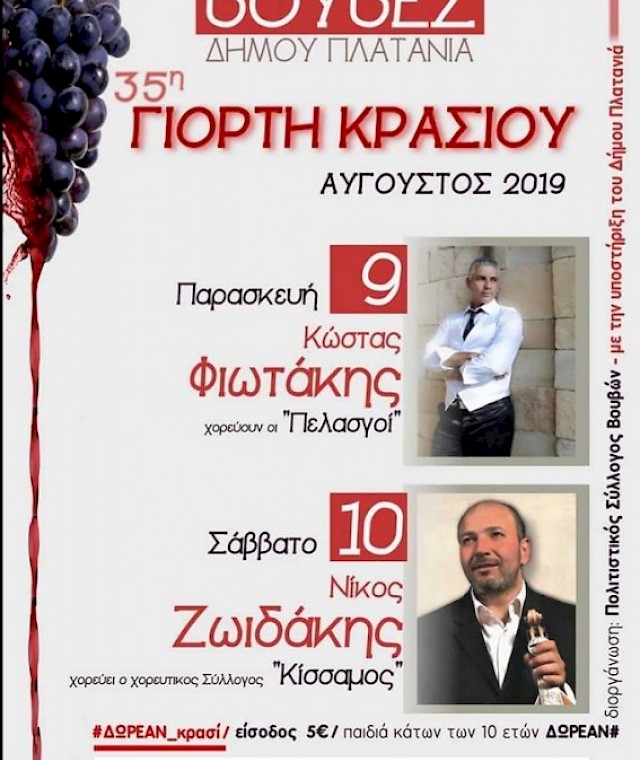Το διήμερο 9-10 Αυγούστου θα πραγματοποιηθεί η 35η Γιορτή Κρασιού στις Βούβες (προαύλιο Δημοτικού Σχολείου), με διοργανωτή τον Πολιτιστικό Σύλλογο του χωριού.