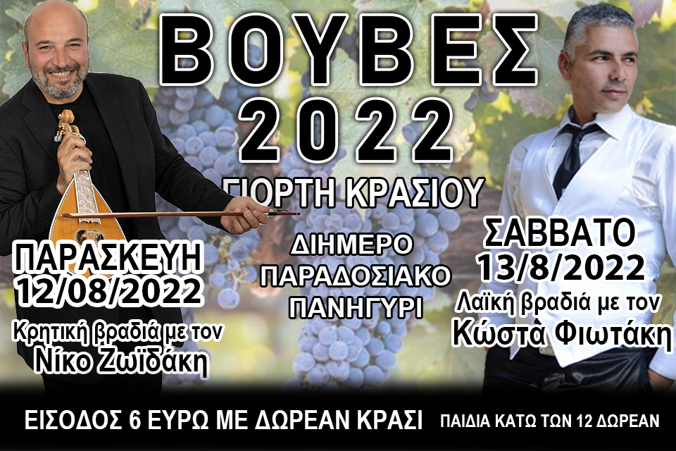 Ένα από τα πιο όμορφα χωριά του νομού Χανίων, οι Βούβες του δήμου Πλατανιά, διάσημο για την – ίσως αρχαιότερη – ελιά στον κόσμο, είναι επίσης γνωστό για μία γιορτή που ξεκίνησε πριν 37 χρόνια και συνεχίζει μέχρι σήμερα με αμείωτη επιτυχία.
