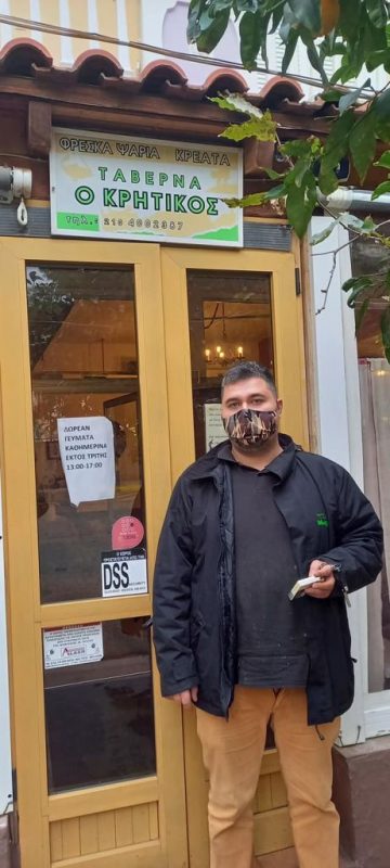 Ο Δημήτρης Καρκανοραχάκης, που έχει αναλάβει αυτή την εθελοντική προσφορά, είναι σπουδασμένος μάγειρας και έχει την ταβέρνα «Κρητικός», που με την καραντίνα έκλεισε. Τα γεμάτα ψυγεία του έγιναν φαγητό για άπορους, για αναξιοπαθούντες, για ΑΜΕΑ, που όπως και αν το απευχόμαστε, όλοι μπορούμε να βρεθούμε σε ανάλογες δυσκολίες αυτούς τους πικρούς καιρούς.
