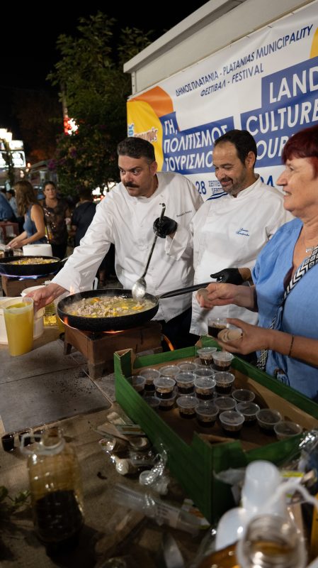 Μια μεγάλη γιορτή για τα τοπικά μας προϊόντα πραγματοποιήθηκε το  Σάββατο 28 Σεπτεμβρίου, στην πλατεία του Πλατανιά, στο πλαίσιο του 14ου  Φεστιβάλ  «Γη, Πολιτισμός, Τουρισμός που διοργανώνει ο Δήμος Πλατανιά και η Κοινωφελής Επιχείρηση του Δήμου Πλατανιά, σε συνδιοργάνωση με την Περιφέρεια Κρήτης. Η βραδιά ήταν αφιερωμένη στο κρητικό κρασί και τα παράγωγά του αλλά και στην παράδοση και τον πολιτισμό μας, με την πλατεία του Πλατανιά να μετατρέπεται σε χώρο βιωματικών δράσεων κι εμπειριών για κατοίκους κι επισκέπτες του Δήμου Πλατανιά. Το παραδοσιακό πατητήρι σταφυλιών, τα οποία είχαν τρυγήσει νωρίς το πρωί μια ομάδα επισκεπτών από αμπελώνα του Δήμου Πλατανιά, η απόσταξη τσικουδιάς, η παρασκευή εδεσμάτων με βάση το κρασί , σε συνδυασμό με παραδοσιακή μουσική και χορούς , όλα με δωρεάν συμμετοχή και κεράσματα,  προσέφεραν μια ξεχωριστή εμπειρία, κυρίως στους ξένους επισκέπτες του τόπου μας.