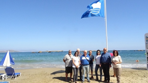 Μια από τις 11 συνολικά Γαλάζιες Σημαίες, που θα κυματίζουν σε παραλίες του Δήμου Χανίων,υψώθηκε την Παρασκευή (12/7) το πρωί στην παραλία της Νέας Χώρας παρουσία του Δημάρχου Χανίων Τάσου Βάμβουκα και των Αντιδημάρχων Περιβάλλοντος, Γεωργίας Σαρικάκη, και Τουρισμού Ελπίδας Τσιτσιρίδη.