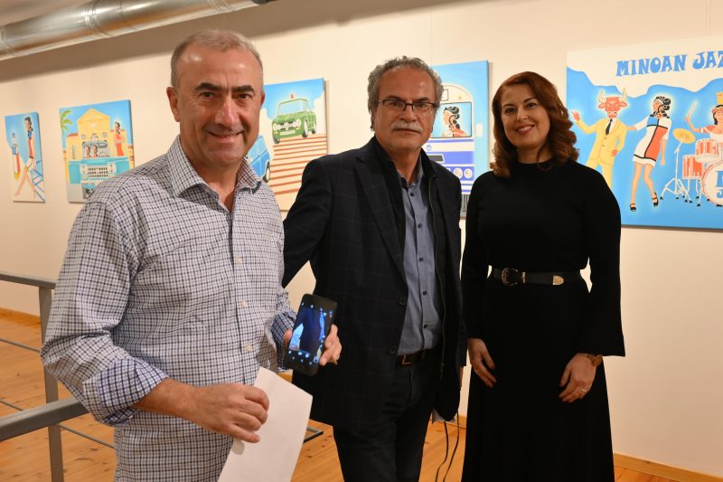 Χαιρετισμό επίσης απέστειλε η Εντεταλμένη Περιφερειακή Σύμβουλος κ. Σοφία Μαλανδράκη- Κρασουδάκη. Στην εκδήλωση παραβρέθηκε και απηύθυνε χαιρετισμό και ο Διευθυντής του Μουσείου Σύγχρονης Τέχνης Χανίων- Ελαιουργείον κ. Ιωάννης Ν. Αρχοντάκης, ο οποίος προσέφερε για τις ανάγκες της εκδήλωσης την ελαιογραφία “Η ΤΡΑΓΙΚΗ ΚΑΤΗΦΟΡΑ ΤΗΣ ΓΗΣ” της Ιρανής ζωγράφου Αζίτα Σαρεμί από τις Μόνιμες Συλλογές του Μουσείο Σύγχρονης Τέχνης Χανίων – Ελαιουργείον. Επίσης παρουσιάστηκε, εκτός από την παραπάνω ελαιογραφία, και το έργο ” Αφόρετο Φόρεμα” από την Mihelaki / Μιχελάκη Μαρια.