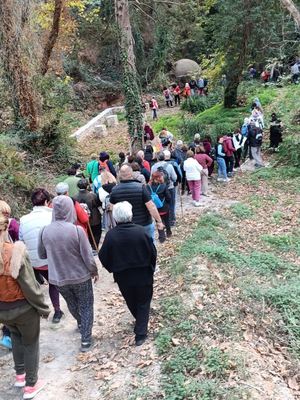 Ακολουθώντας μια  μια κυκλική και ήπια διαδρομή περίπου 4 χιλιομέτρων, μέσα από δασώδη μέρη, παλιές βρύσες και εκκλησίες, οι πεζοπόροι επισκεφτήκαν τον  Ι.Ν Αγίου Νικολάου, την Κάτω βρύση (Κρήνη Οθωμανικής περιόδου) και μέσα από το μονοπάτι της κοίτης ρυακιού,  έφτασαν στην Αρχαία Ελιά και στο Μουσείο Ελιάς των Βουβών. Εκεί ξεναγήθηκαν στον χώρο από τον Αντιδήμαρχο Πολιτισμού κ. Πολυχρόνη Σημαντηράκη και την κ. Κατερίνα Καραπατάκη, οι οποίοι αναφέρθηκαν στα χαρακτηριστικά της ελιάς και στην ιστορία της .