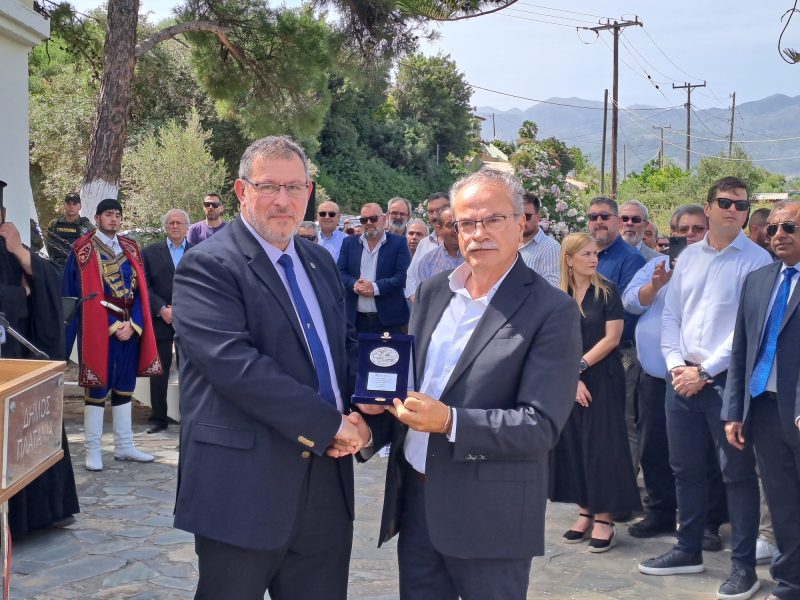 Στην εκδήλωση χαιρετισμό επίσης απηύθυναν, η Υφυπουργός Μετανάστευσης & Ασύλου κ. Σέβη Βολουδάκη, ο Βουλευτής Χανίων κος Αλέξανδρος Μαρκογιαννάκης και εκ μέρους της Περιφέρειας Κρήτης ο Περιφερειακός Σύμβουλος Γιάννης Μανούσακας. Την κεντρική ομιλία πραγματοποίησε ο κ. Νίκος Καστρινάκης, Πρόεδρος του Παγκοσμίου Συμβουλίου Κρητών και του Παραρτήματος  του Εθνικού Ιδρύματος «Ελευθέριος Κ. Βενιζέλος» στις Η.Π.Α, οποίος αναφέρθηκε στη σημασία της ιστορικής μνήμης και της διαρκούς επαγρύπνησης απέναντι στον φασισμό και τον ναζισμό, με αφορμή τις θυσίες του κρητικού λαού στη Μάχη της Κρήτης και στο καθήκον μας να προστατεύουμε τη δημοκρατία και να μεταδίδουμε τις αξίες της ελευθερίας και της ανθρωπιάς στις επόμενες γενιές.