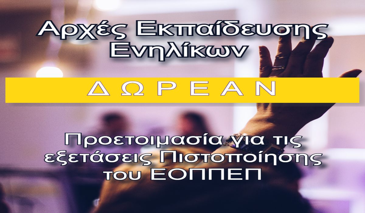 Τα κέντρα δια βίου μάθησης Easy Education στο πλαίσιο της εταιρικής κοινωνικής ευθύνης, συνεκτιμώντας παράλληλα τις ιδιαίτερες συνθήκες που βιώνουμε και εν όψει των εξετάσεων πιστοποίησης εκπαιδευτών ενηλίκων, ως έχουν ανακοινωθεί από τον ΕΟΠΠΕΠ, προσφέρουν την δυνατότητα ΔΩΡΕΑΝ προετοιμασίας για τους συμμετέχοντες σε αυτές.