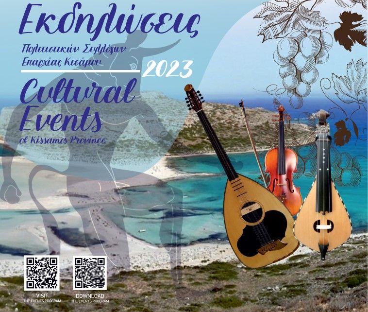 Η Ένωση Πολιτιστικών Φορέων Επαρχίας Κισάμου (Ε.ΠΟ.Φ.Ε.Κ.), σε συνεργασία με την Ιερά Μητρόπολη Κισάμου και Σελίνου Ι.Μ.Κ.Σ., την Περιφέρεια Κρήτης, τον Δήμο Κισάμου, τον Δήμο Πλατανιά, την Ορθόδοξο Ακαδημία Κρήτης και την Εταιρεία Κρητικών Σπουδών-Ίδρυμα Καψωμένου εκδίδει Έντυπο (Ιούνιος 2023) , το οποίο περιλαμβάνει τις εκδηλώσεις των Πολιτιστικών Συλλόγων της Επαρχίας Κισάμου, όπως επίσης και των συμμετεχόντων Φορέων (δήμοι Κισάμου, Πλατανιά κλπ) για το έτος 2023.