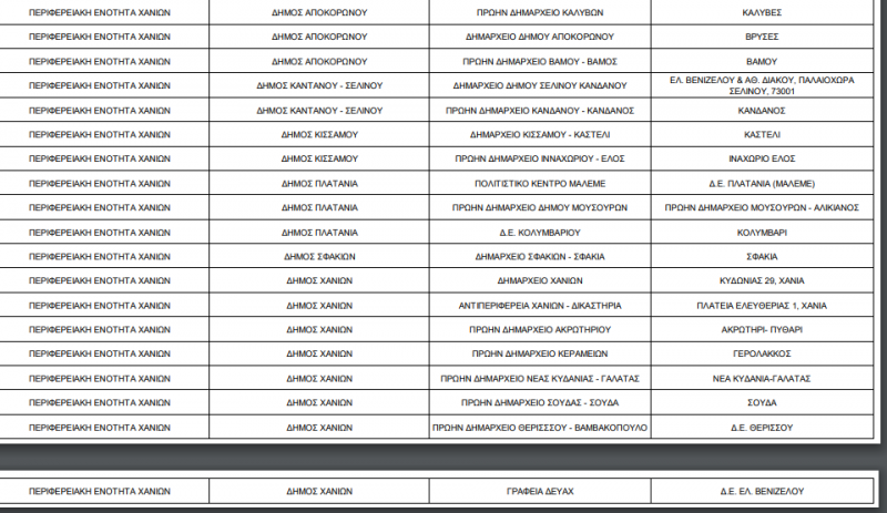 Τα εκλογικά τμήματα του Νομού Χανίων: