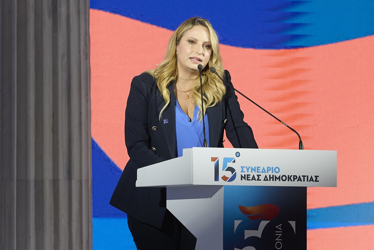 Στέκομαι εδώ μπροστά σας βαθιά συγκινημένη που αποτελώ τη συνέχει των πενήντα χρόνων προσφοράς από τα στελέχη της παράταξής μας. Προσφοράς σε ιδέες, αξίες, όραμα, ανάπτυξη.