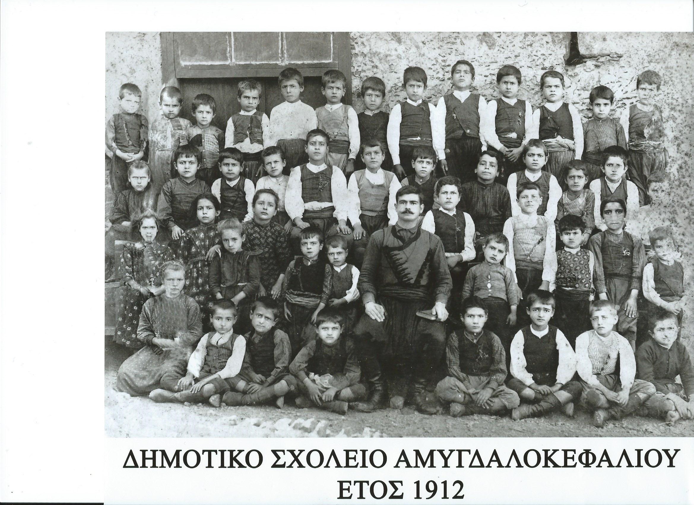 Η φωτογραφία μας γυρίζει ακριβώς 75 χρόνια πίσω, την σχολική περίοδο 1947 – 48 και διακρίνονται οι μαθητές και οι μαθήτριες του Δημοτικού Σχολείου Αμυγδαλοκεφαλίου, με τον δάσκαλό τους Δ. Κουφογιαννάκη.
