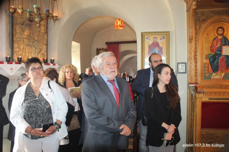 Ανάμεσα στους πολυπληθείς προσκυνητές ο Δήμαρχος Κυθήρων κ. Ευστράτιος Χαρχαλάκης με σύσσωμο το Δημοτικό Συμβούλιο, Βουλευτές και υποψήφιοι Βουλευτές του τόπου, αντιπροσωπεία του Δήμου Κισάμου, ως και όλες οι Αρχές των Κυθήρων.