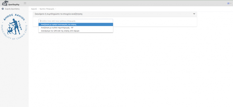 Σε λειτουργία βρίσκεται από σήμερα, Τετάρτη 29/9/2021, το online σύστημα πληρωμής οφειλών προς Δήμο Χανίων, epay.chania.gr, το οποίο παρέχει στους δημότες τη δυνατότητα, χρησιμοποιώντας την πιστωτική ή τη χρεωστική τους κάρτα να αποπληρώνουν τις οφειλές τους, μέσα σε ασφαλές τραπεζικό περιβάλλον.