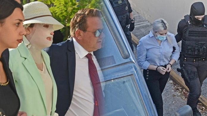 Η Ιωάννα Παλιοσπύρου συνοδευόμενη από τους δικηγόρους της κατέφθασε στο δικαστήριο φορώντας την προστατευτική λευκή μάσκα και εισήλθε στο κτήριο προκειμένου να οδηγηθεί στην αίθουσα που θα γίνει η δίκη.