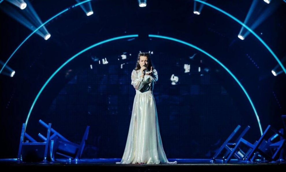 H Αμάντα εμφανίστηκε στη σκηνή με ένα απίθανο μακρύ φόρεμα σε λευκούς και ασημί χρωματισμούς ενώ εξίσου εντυπωσιακό είναι και το σκηνικό της. Η τραγουδίστρια περιβάλλεται από άδειες καρέκλες στο έδαφος ενώ ο χρωματισμός στο φόντο είναι στην απόχρωση του μπλε.
