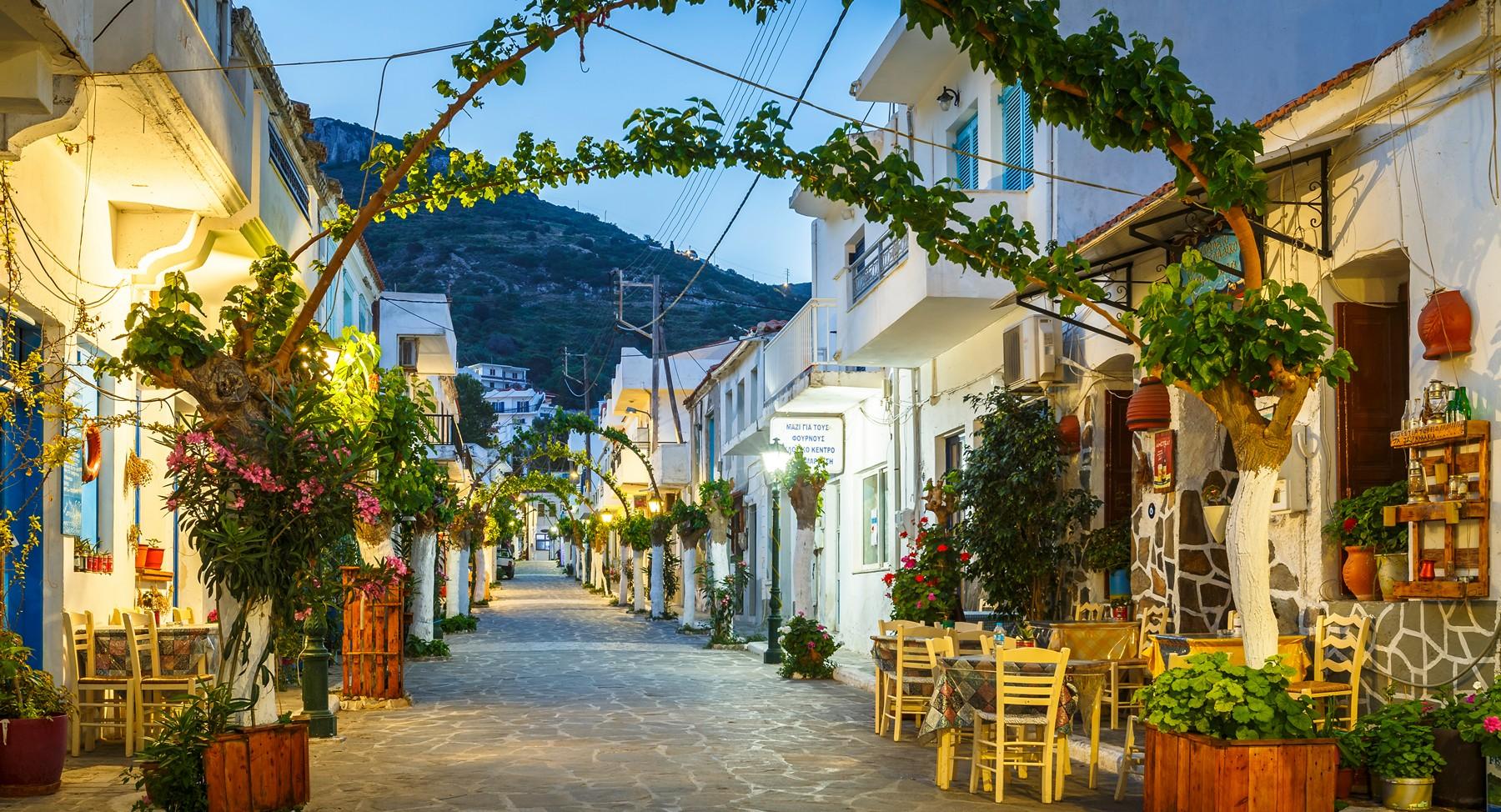 Η πρώτη εικόνα που έχει ο επισκέπτης, κατεβαίνοντας από το πλοίο και αντικρίζοντας τη Χώρα, είναι το λευκό και το μπλε που αναμειγνύονται με το πράσινο των δέντρων. Όλα μαζί ρίχνουν τη σκιά τους στο πετρόκτιστο σοκάκι που ενώνει το λιμάνι με την κεντρική πλατεία. Εκεί, μπορείτε να απολαύσετε τον καφέ σας, σε μικρά καφενεδάκια με ασπρισμένες μουριές, να μιλήσετε με τους φιλόξενους ντόπιους, να περάσετε από το εκκλησάκι του Αγίου Νικόλα κι από κει να ανεβείτε τα σκαλάκια και να τριγυρίσετε σε όλο το χωριό, βλέποντας τα παραδοσιακής αρχιτεκτονικής σπίτια. Τα βράδια, με φόντο τα πολύχρωμα βαρκάκια, η παραλία της γεμίζει από κόσμο.