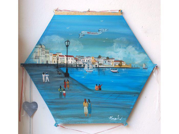 Τοποθετήστε τον σκελετό πάνω στο γκοφρέ χαρτί και κόψτε το περιμετρικά, αφήνοντας περιθώριο περίπου 5 εκ. για να τυλιχτεί γύρω από την περίμετρο τους σκελετού, στο σύρμα. Στο σημείο αυτό μπορείτε να διακοσμήσετε τον χαρταετό σας όπως θέλετε, π.χ. ζωγραφίζοντας ή κολλώντας αυτοκόλλητα.