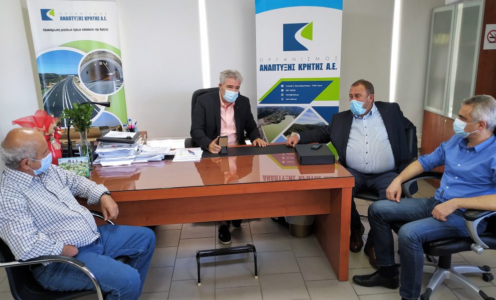 Συνάντηση με τον Δήμαρχο Κισσάμου κ. Γεώργιο Μυλωνάκη, είχε την Τρίτη 11/5/2021 ο Διευθύνων Σύμβουλος του Οργανισμού Ανάπτυξης Κρήτης, κ. Άρης Παπαδογιάννης, με αφορμή την έγκριση της χρηματοδότησης που αφορά την «Ολοκλήρωση των εργασιών του ισόπεδου κόμβου Δραπανιά Χανίων και συνδετήρων οδών».