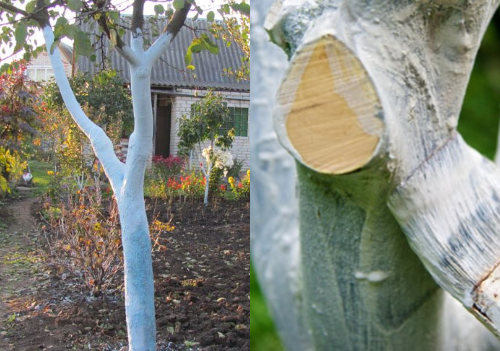 Για κάθε 10κιλο τσουβαλάκι έτοιμου ασβέστη σε υγρή μορφή προσθέστε 150 γραμμάρια γαλαζόπετρας και άλλα 150 γραμμάρια θειικού σιδήρου σε υγρή μορφή και ανακατέψτε τα. Σε περίπτωση που χρησιμοποιήσετε πλαστικό χρώμα, αραιώστε το σε νερό με αναλογία 1:1 και απλώστε το επάνω στον κορμό.