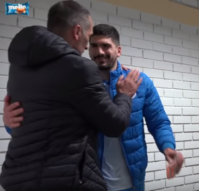 Μετά το τέλος του αγώνα, όπως μαρτυρά και η φωτογραφία, ο Γιώργος Δώνης αγκάλιασε και συνεχάρη τον Νώντα Παντελάκη κατά τη συνάντηση τους στα αποδυτήρια.