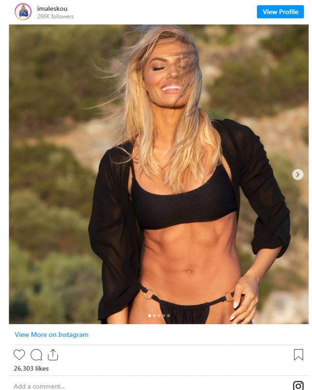 Άλλωστε, η Ιωάννα Μαλέσκου ποζάρει συχνά με μαγιό και οι κοιλιακοί της, όπως και το σεξαπίλ της, πραγματικά κόβουν την ανάσα.