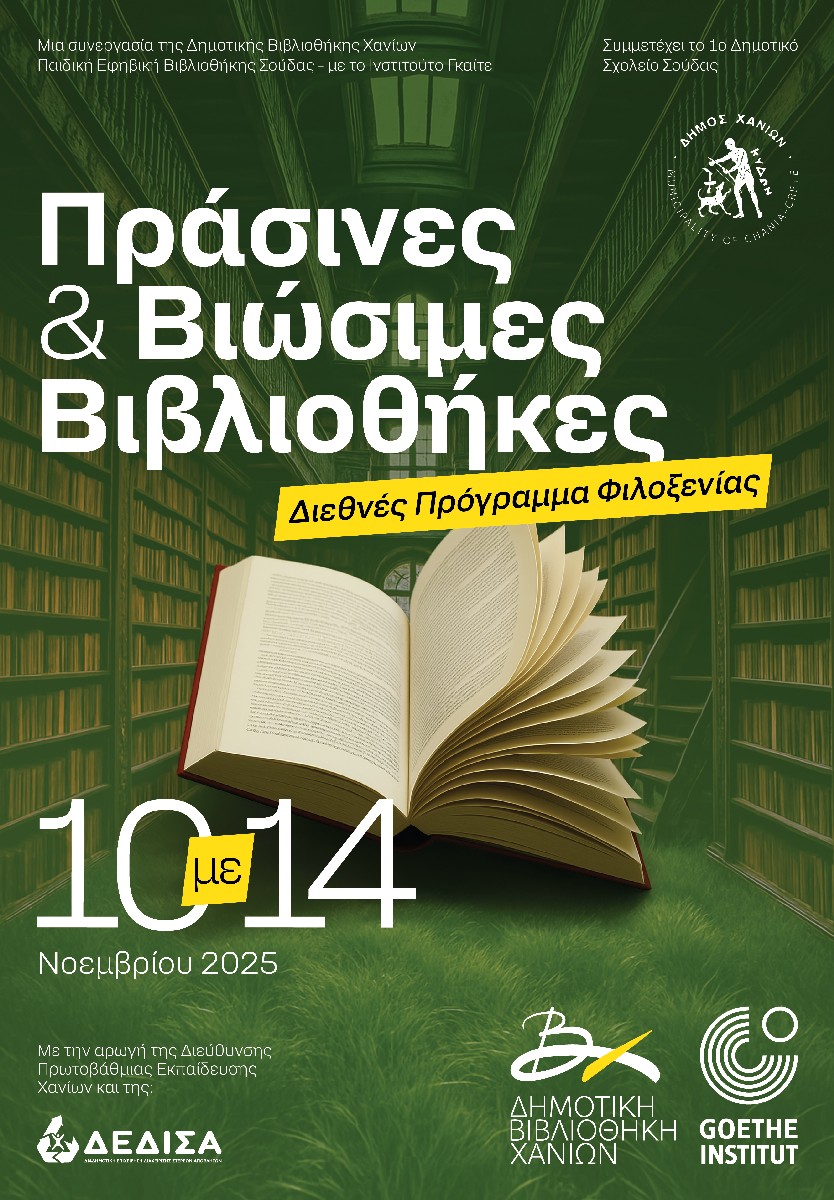 Ειδικότερα, τη Δευτέρα 10 Νοεμβρίου 2025, στη Δημοτική Βιβλιοθήκη Χανίων (Υψηλαντών 30) και την Παιδική-Εφηβική Βιβλιοθήκη Σούδας (25ης Μαρτίου 87), θα γίνει η επίσημη παρουσίαση του διεθνούς προγράμματος.