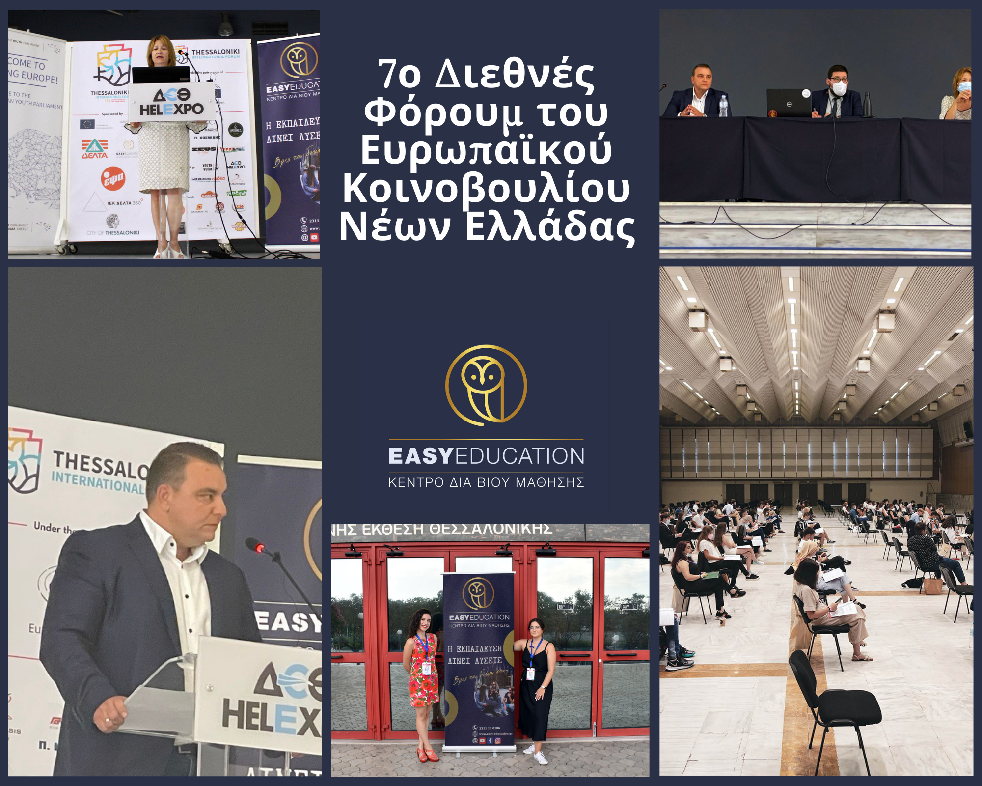 Η Easy Education συμμετείχε ενεργά στο 7ο διεθνές φόρουμ του Ευρωπαϊκού Κοινοβουλίου Νέων Ελλάδας με τίτλο “Μαθαίνοντας από το παρελθόν, επανασχεδιάζοντας το μέλλον μας. Η εκ νέου ώθηση της ευρωπαϊκής κοινωνίας προς μία αναδιαμορφωμένη πραγματικότητα”. Μεταξύ των διακεκριμένων ομιλητών στο πάνελ με θέμα “Μη τυπική Εκπαίδευση στην Ελλάδα και την Ευρώπη”, είχε την τιμή να συμμετέχει ο κ. Νικόλαος Μουρτζίλας, υπεύθυνος σπουδών και ιδιοκτήτης των Κέντρων Δια Βίου Μάθησης Easy Education.
