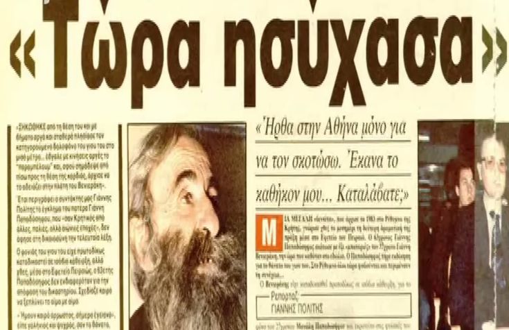 Σαν σήμερα, πριν από ακριβώς 31 χρόνια, ο Γιάννης Παπαδόσηφος εκτελεί μέσα στην αίθουσα του Εφετείου Πειραιώς τον Γιάννη Βενιεράκη, ο οποίος τον Αύγουστο του 1983 είχε σκοτώσει τον 27χρονο γιο του, Μανόλη, στο Ρέθυμνο. Στο πρωτοβάθμιο δικαστήριο, που είχε γίνει στο Ηράκλειο, ο Βενιεράκης καταδικάζεται σε ποινή ισόβιας κάθειρξης.