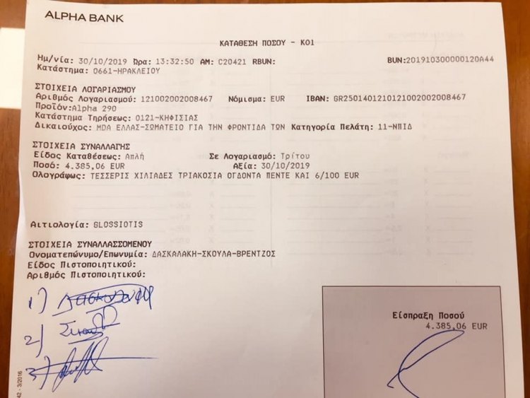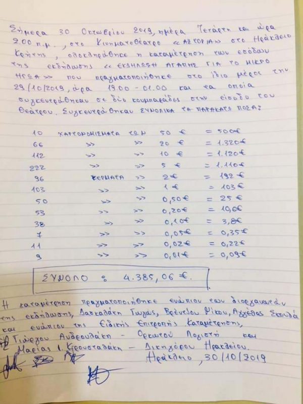 Νωρίς το μεσημέρι της Τετάρτης, κατατέθηκαν τα χρήματα που συγκεντρώθηκαν από τη συναυλία και επρόκειτο για ποσό που απέδειξε την αλληλεγγύη και τη δύναμη του κόσμου σε περιπτώσεις ανάγκης.