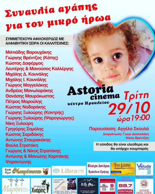 Οι διοργανωτές απευθύνουν ευχαριστίες στον κόσμο που στήριξε την προσπάθεια, σε αυτή τη συναυλία αγάπης για τον μικρό Παναγιώτη Ραφαήλ, στους καλλιτέχνες που έπαιξαν αφιλοκερδώς κι ανταποκρίθηκαν αμέσως στο κάλεσμα χωρίς δεύτερη σκέψη, καθώς και στα τρία χορευτικά συγκρότηματα που μαζί με τους μουσικούς πλημμύρισαν το Κινηματοθέατρο “Αστόρια” με … άρωμα Κρήτης!