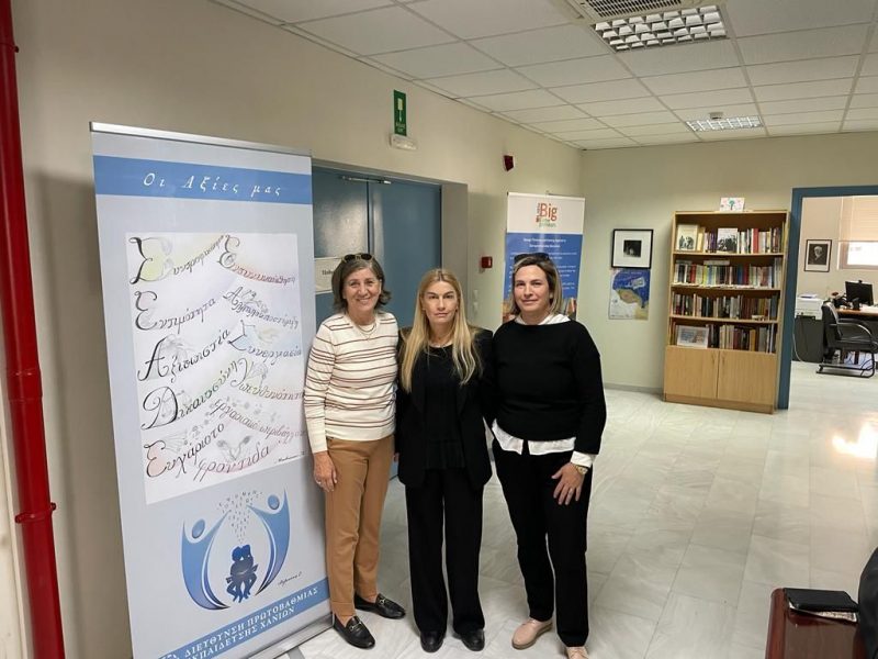 Σήμερα Τρίτη, 25 Απριλίου, είχε συνάντηση με τη διευθύντρια πρωτοβάθμιας εκπαίδευσης Χανίων κ. Π. Ψαρουδάκη και τον διευθυντή δευτεροβάθμιας εκπαίδευσης Χανίων κ. Ι. Αμπελά.