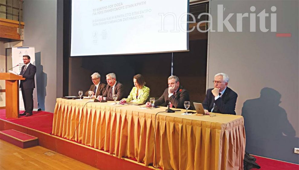 Την επίσημη πρώτη του Κέντρου του Οργανισμού Οικονομικής Συνεργασίας και Ανάπτυξης (ΟΟΣΑ) στα Χανιά, σηματοδότησε το συνέδριο που διοργανώθηκε χθες, Πέμπτη 23 Μαρτίου, στο Κέντρο Αρχιτεκτονικής της Μεσογείου, με θέμα τους πληθυσμούς στην Κρήτη. Παρουσία του προέδρου του Οικονομικό Φόρουμ των Δελφών κ. Συμεών Τσομώκου και του μόνιμου αντιπροσώπου του ΟΟΣΑ και ομότιμου καθηγητή Γεωπολιτικής στη Σορβόννη κ. Γιώργου Πρεβελάκη, επιχειρήθηκε μια πολύπλευρη προσέγγιση ζητημάτων, όπως το Προσφυγικό και Μεταναστευτικό, το Δημογραφικό και η σχέση τους με πολιτικές και οικονομία. Την κυβέρνηση εκπροσώπησε η υφυπουργός Εργασίας και Κοινωνικών Υποθέσεων κ. Μαρία Συρεγγέλα.