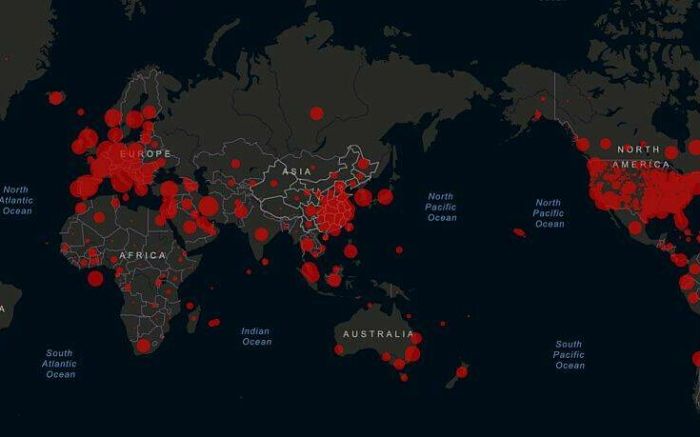 Την πρώτη πεντάδα σε επιβεβαιωμένα κρούσματα απαρτίζουν οι ΗΠΑ (123.750), η Ιταλία (92.472), η Κίνα (81.439), η Ισπανία (73.235) και η Γερμανία (57.695).