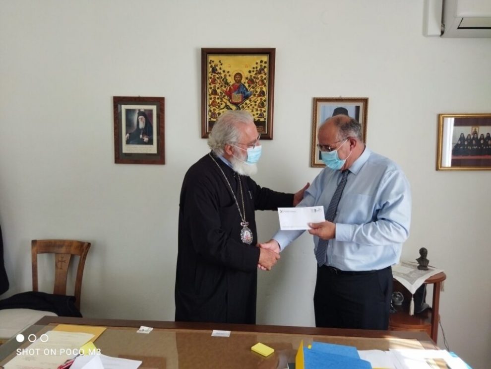 Ο Διευθυντής Δικτύου της Τράπεζας Χανίων κ. Γεώργιος Επανωμεριτάκης συναντήθηκε, εκ μέρους του Προέδρου κ. Μιχαήλ Μαρακάκη και της Διοίκησης της Τράπεζας, την Τετάρτη 06 Οκτωβρίου 2021, με τον Σεβασμιώτατο Μητροπολίτη Αρκαλοχωρίου, Καστελλίου και Βιάννου κ. Ανδρέα, στα γραφεία της Ιεράς Μητροπόλεως στο Αρκαλοχώρι, και του επέδωσε ένα σεβαστό ποσό, εκ μέρους της Τράπεζας Χανίων, εκφράζοντας με τον τρόπο αυτό την αλληλεγγύη και την συμπαράσταση τους προς τους σεισμοπαθείς αδελφούς μας.