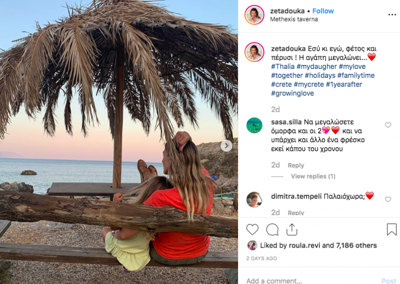 Η Ζέτα, μαζί με την κόρη της και τον σύζυγο της περνούν ξένοιαστες στιγμές, ενώ η ίδια ανεβάζει συχνά φωτογραφίες στον λογαριασμό της από τις διακοπές τους.