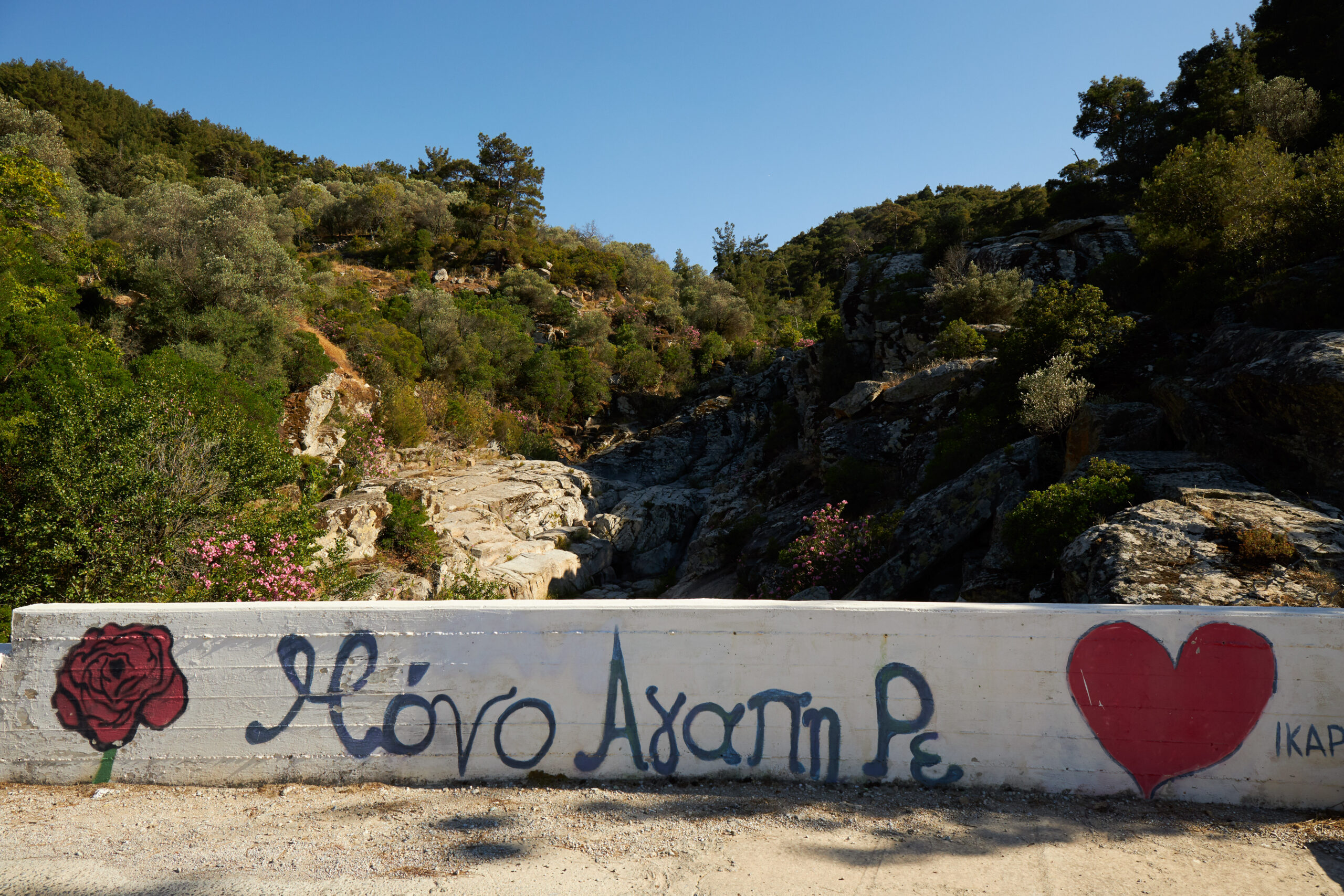Εκεί στα δυσθεώρητα ύψη ο επισκέπτης στέκει και φωτογραφίζει μαγεμένος από τον ορίζοντα προς το Αιγαίο και κάποια στιγμή έχει σαστίσει από το τοπίο που δεν μπορείς να συναντήσεις σε κανένα άλλο νησί. Η Ικαρία δεν είναι, αλίμονο, μόνο τα πανηγύρια –είναι η φύση και ένα τοπίο συγκλονιστικό, που γεωγραφικά συμπληρώνεται και από τον κεντρικό άξονα Μεσαριά –Μαγγανίτης– Πλαγιά όταν πρέπει να οδηγήσεις ανάμεσα στα γυμνά βουνά και να σταματάς συνεχώς να φωτογραφίζεις. Τεράστιοι βράχοι κρέμονται ή κείτονται στις πλαγιές σαν να έπεσαν από τον ουρανό κι εσύ νιώθεις αυτό που είναι ο άνθρωπος μπροστά στη φύση. Τόσο μικρός.