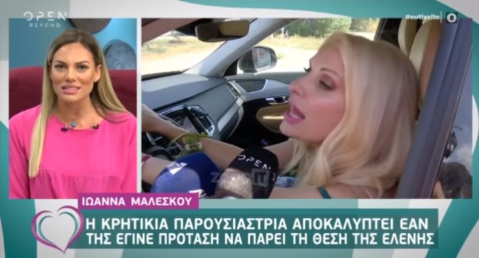 Το όνομά της ήταν μέσα στη λίστα με τα πρόσωπα που ακούστηκαν ότι θα αντικαταστήσουν την Ελένη Μενεγάκη μετά την αποχώρησή της από τον Alpha. Ποια είναι η αλήθεια; Η Ιωάννα Μαλέσκου, η παρουσιάστρια της KΡΗΤΗ TV που έχει χαρακτηριστεί ως “Η Μενεγάκη της Κρήτης” μιλώντας χθες στην εκπομπή Ευτυχείτε, αποκάλυψε πώς ακριβώς έχουν τα πράγματα και αν πρόκειται τελικά να την δούμε του χρόνου στη ζώνη που αφήνει η Ελένη Μενεγάκη.