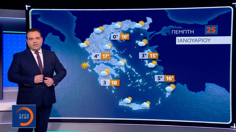 Θερμοκρασία: Από 08 έως 17 και στα Δωδεκάνησα από 13 έως 19 βαθμούς Κελσίου.