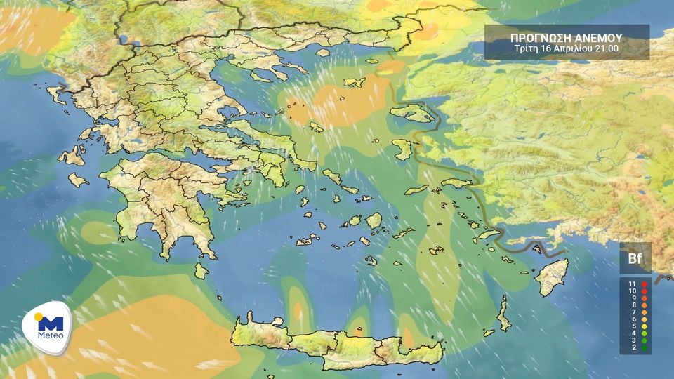 Ευνοείται η μεταφορά αφρικανικής σκόνης. Οι άνεμοι θα πνέουν από νότιες διευθύνσεις 3 με 5, στο Αιγαίο 5 με 6 και τοπικά στα βόρεια έως 7 μποφόρ.