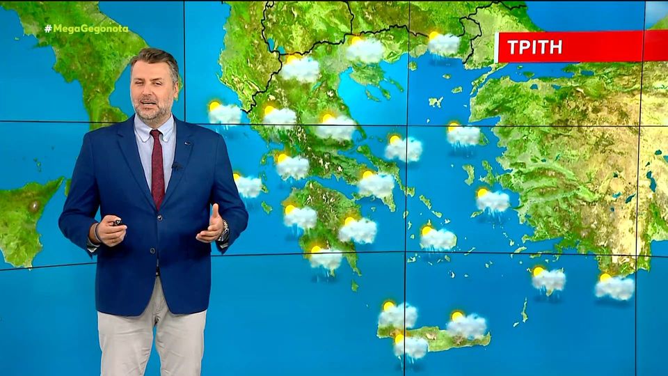 Άστατος καιρός κατά περιόδους νεφελώδης στις περισσότερες περιοχές της χώρας με τοπικές βροχές και κυρίως τις πρωινές ώρες στο Ιόνιο και στο βόρειο και το ανατολικό Αιγαίο σποραδικές καταιγίδες. Τα φαινόμενα τις βραδινές ώρες στα βόρεια θα σταματήσουν.