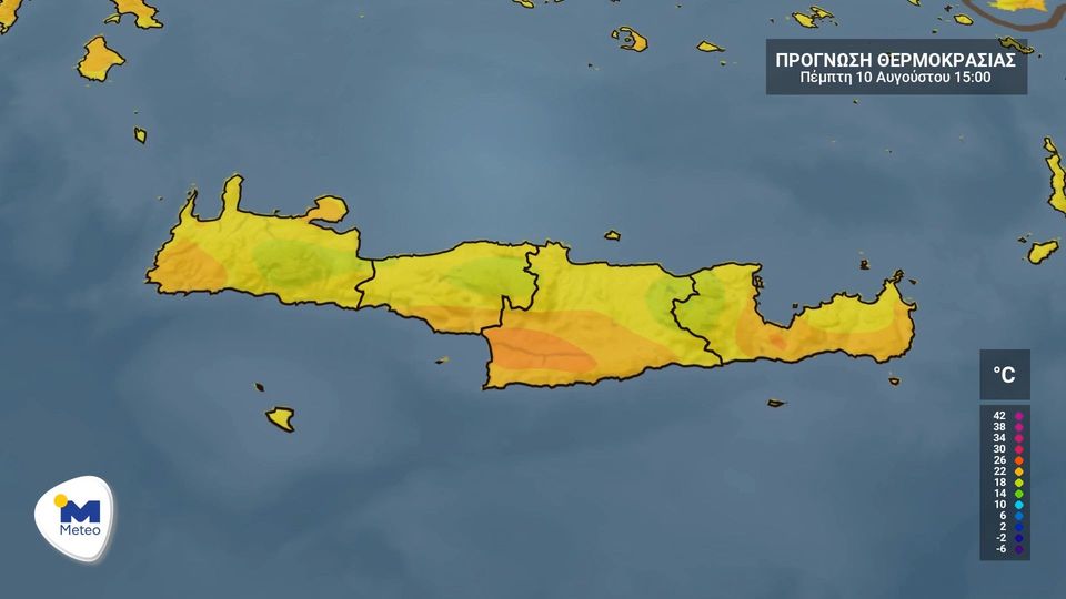 Γενικά αίθριος προβλέπεται ο καιρός σήμερα, Πέμπτη 10 Αυγούστου, στην Κρήτη, σύμφωνα με την Εθνική Μετεωρολογική Υπηρεσία. Οι άνεμοι θα πνέουν από βόρειες διευθύνσεις 4 με 5 και τοπικά στα ανατολικά έως 6 μποφόρ. Η θερμοκρασία θα κυμανθεί από 23 έως 31 βαθμούς Κελσίου.